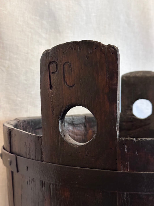 Antique Italian Wooden Bucket – Handcrafted Rustic Charm