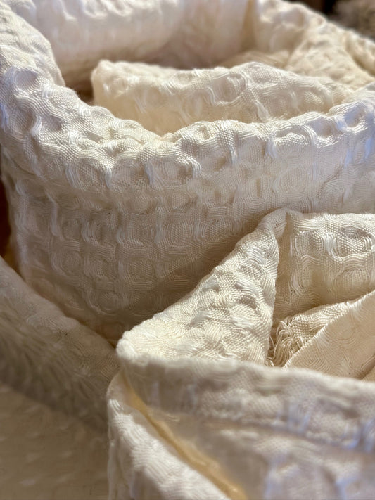 V.VM Linen & Cotton Waffle Bath Towel - White