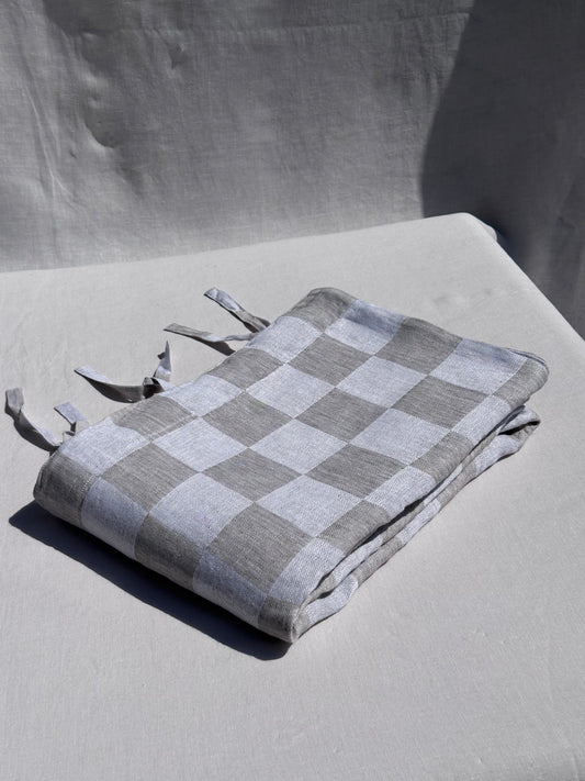 V.VM Light Blue Check Linen Pillow – 50 x 50 cm