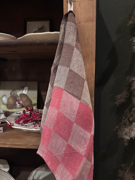 V.VM Double Check Linen Tea Towel - Tomato Red & Chocolate Brown
