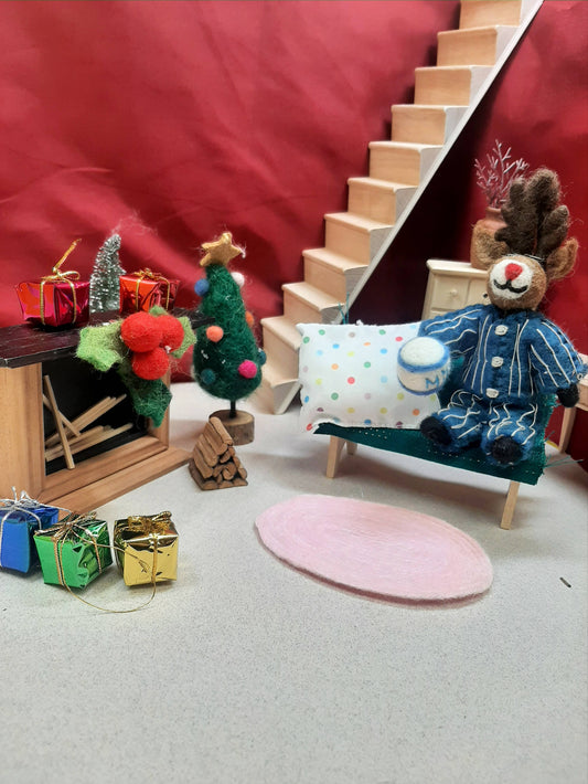 Handmade Needle Felt Christmas Pyjamas Rudolph Hanging Decor