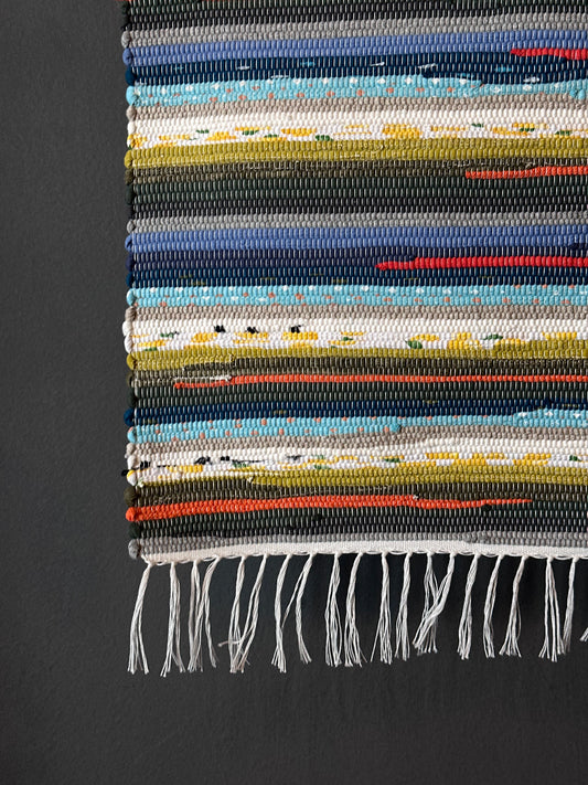Handmade Italian Rug - Green & Yellow Stripes - 55cm X 115cm