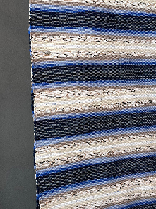 Handmade Italian Rug - Blue & Beiges - 55cm X 260cm