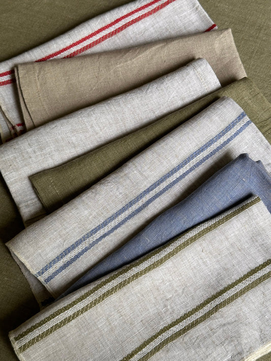 Set of 2 V.VM Linen Napkins - Olive Simple Stitch