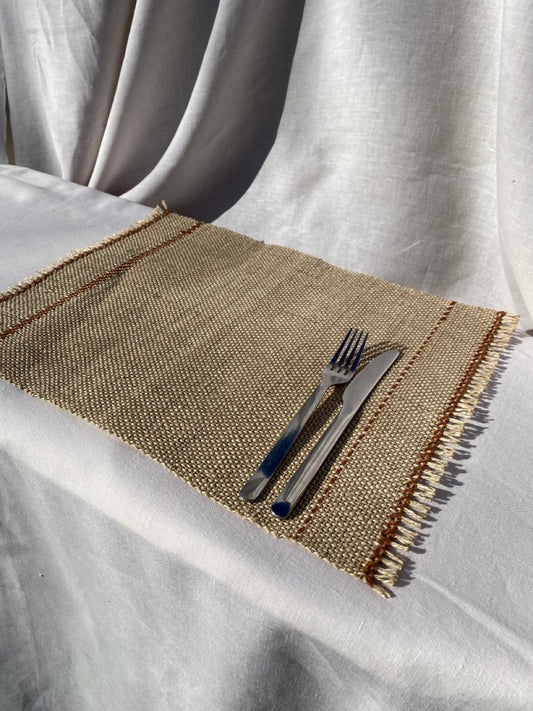 Tovaglietta in iuta e lino intrecciata a mano - dettaglio marrone