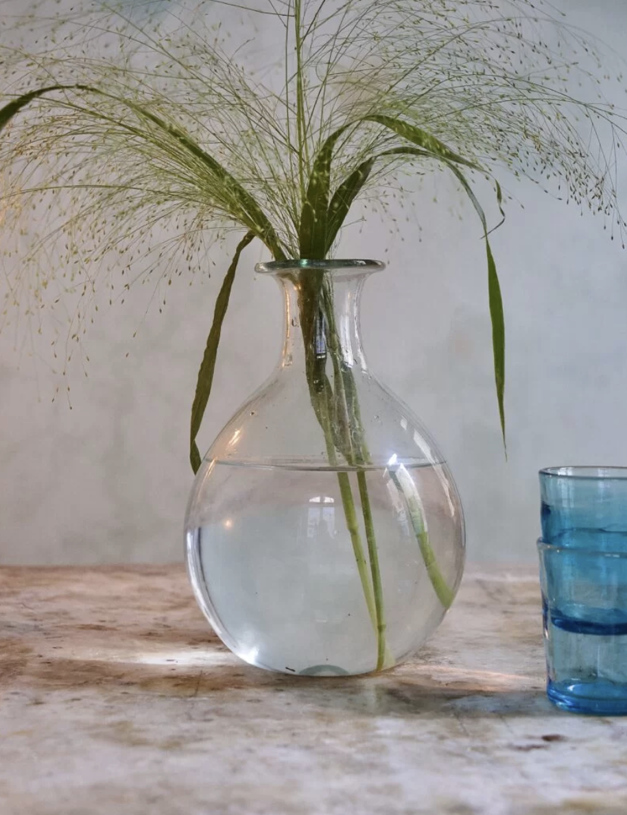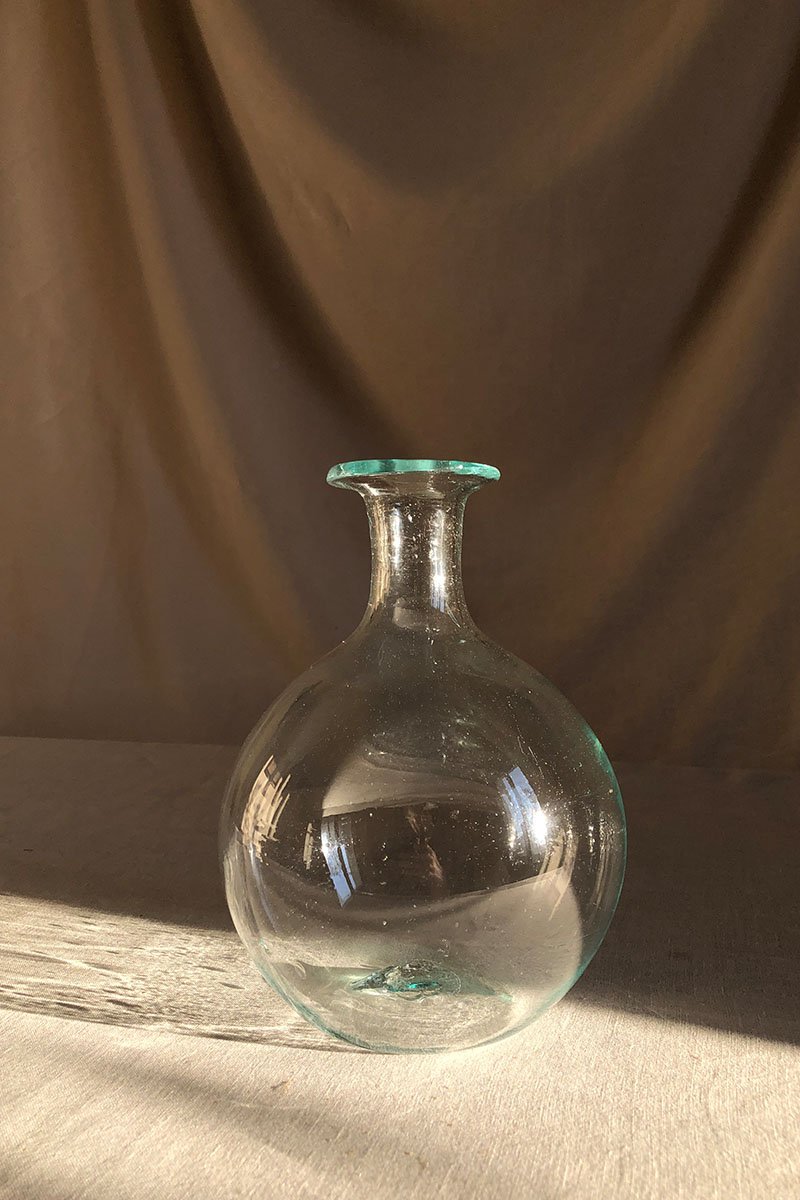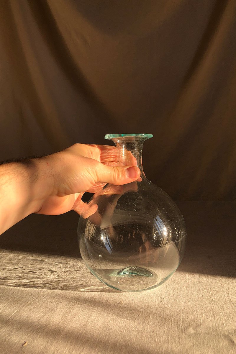 The Bistrot Rond was created for the restaurants in the Hôtel Amour & Grand Amour. At their request, it was designed to hold 1 1/2 liters which is more than a bottle of wine for it to breathe. It is also designed with a wide lip so the servers can carry multiple carafes between their fingers. Talk about efficiency! The Bistrot Rond carafe is mouth-blown from recycled glass by La Soufflerie master artisan glassblowers.
