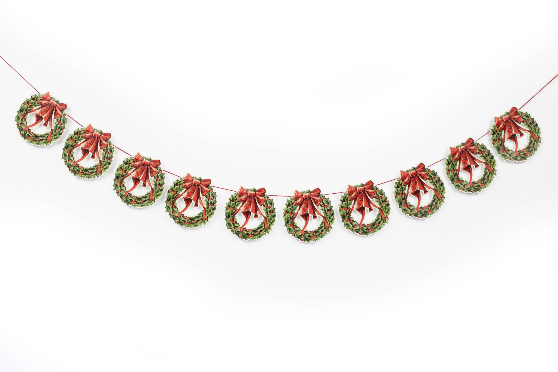 A beautiful die-cut and embossed garland featuring ten repeated images of a Victorian Christmas holly wreath. A perfect addition to your decorations to recreate a little Victorian magic.