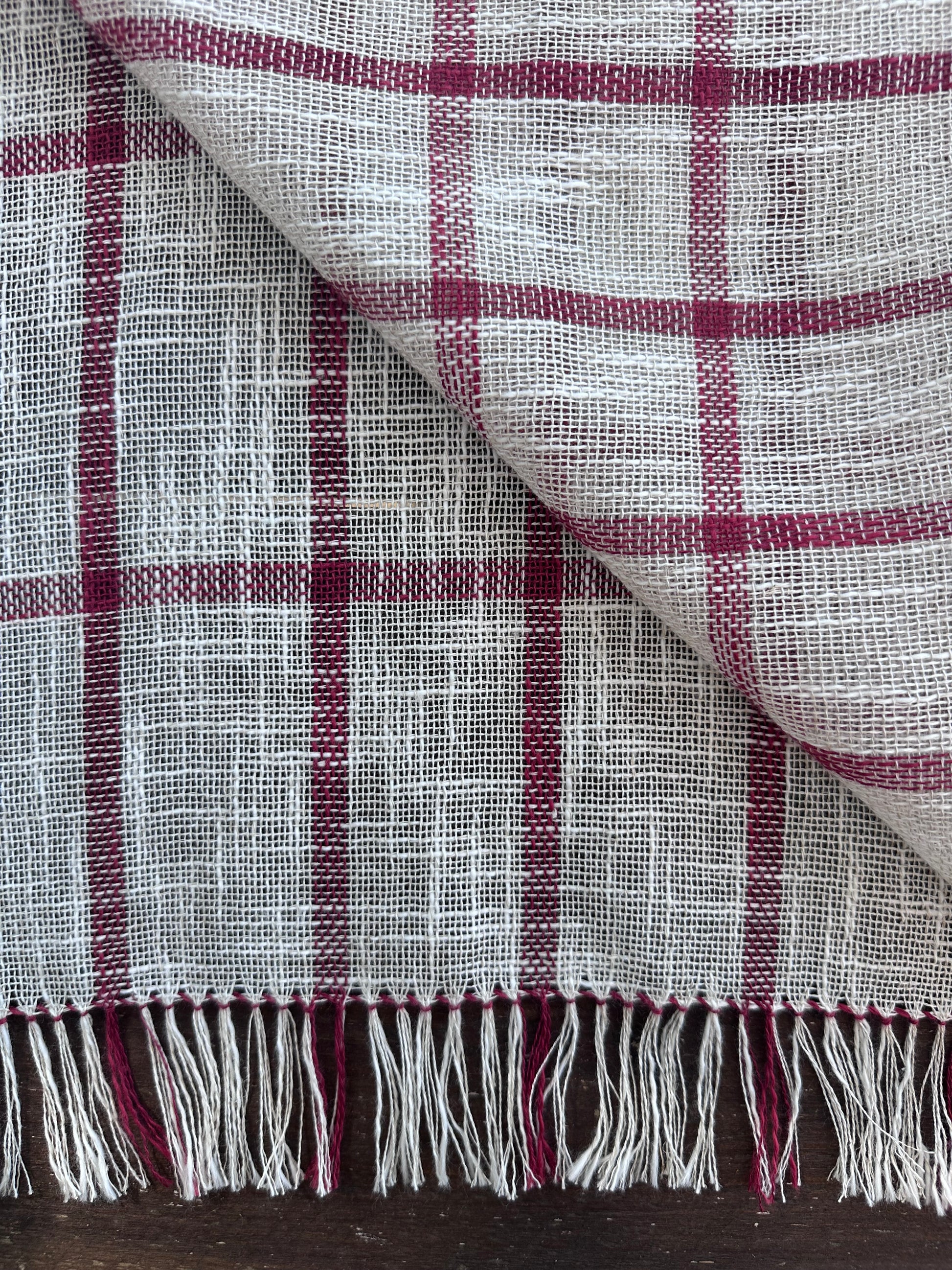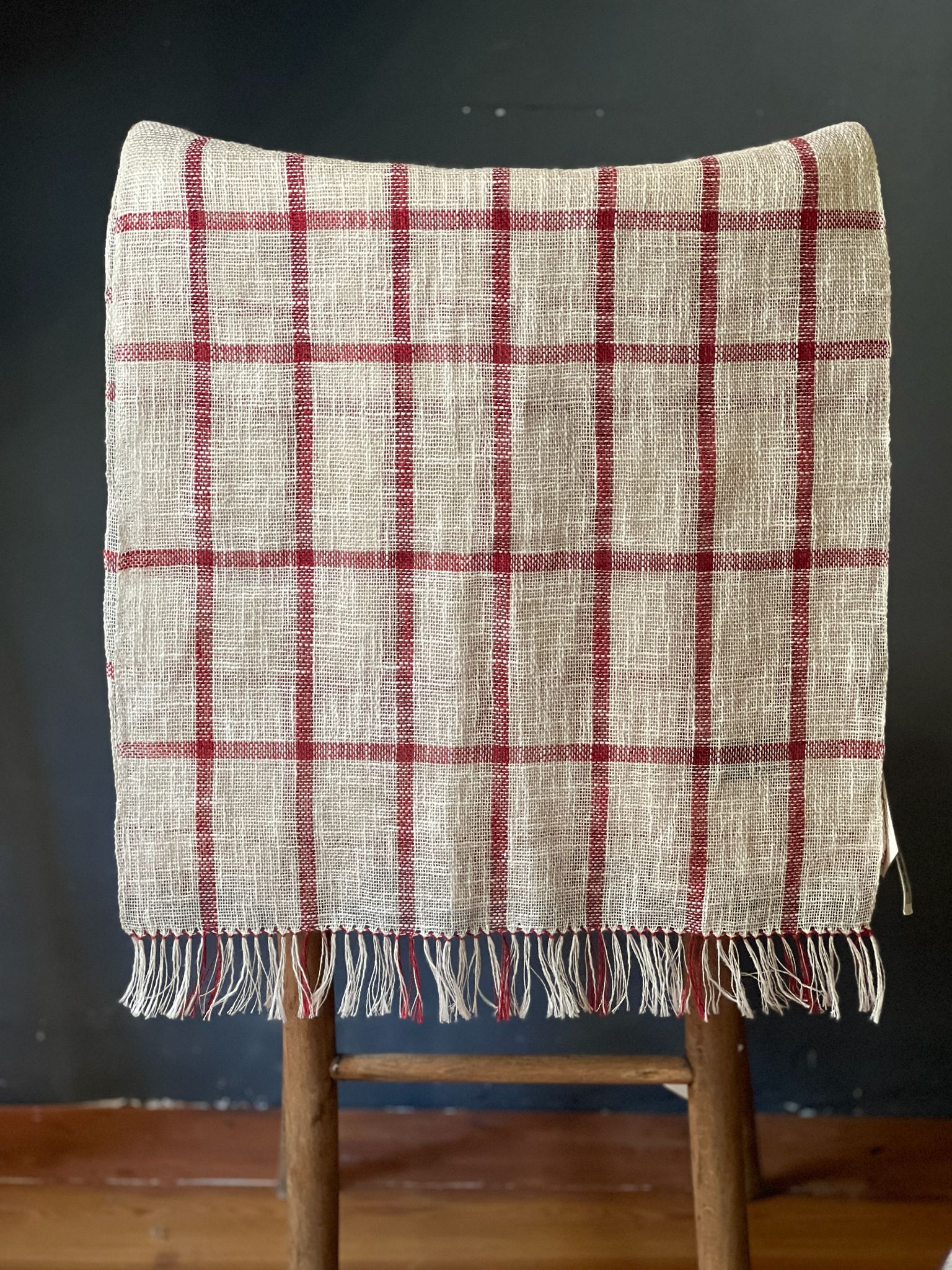 Handmade Linen Scarf in Off White and Red