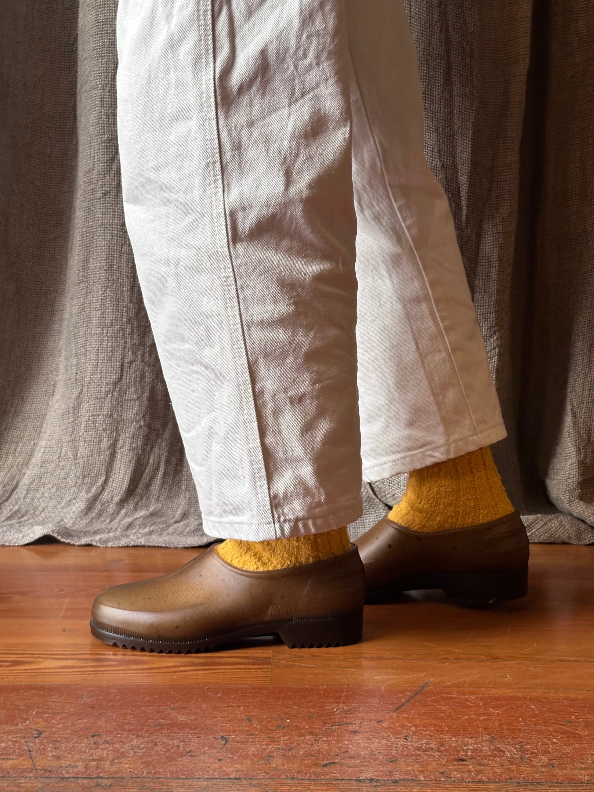 Plasticana's Gardana Hemp Clogs, crafted from hemp plastic in France, feature a convenient slip-on design ideal for gardening, cooking, and various activities.