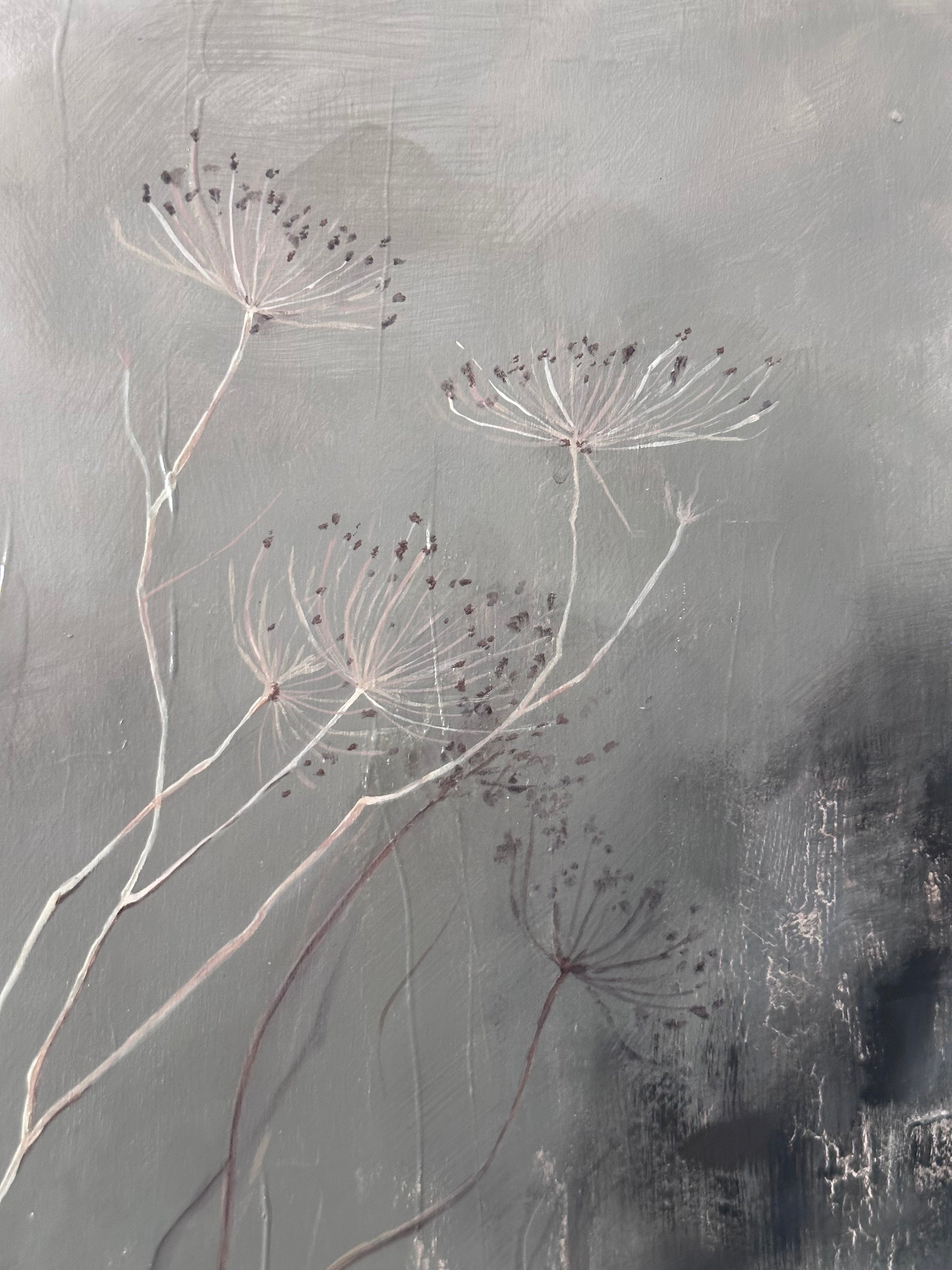 Inspired by the subtle beauty of nature and the delicate dried flowers at Vicolo Via Mameli, these exceptional acrylic and mixed media paintings are the work of Milan-based artist Rossela Lomuscio.
