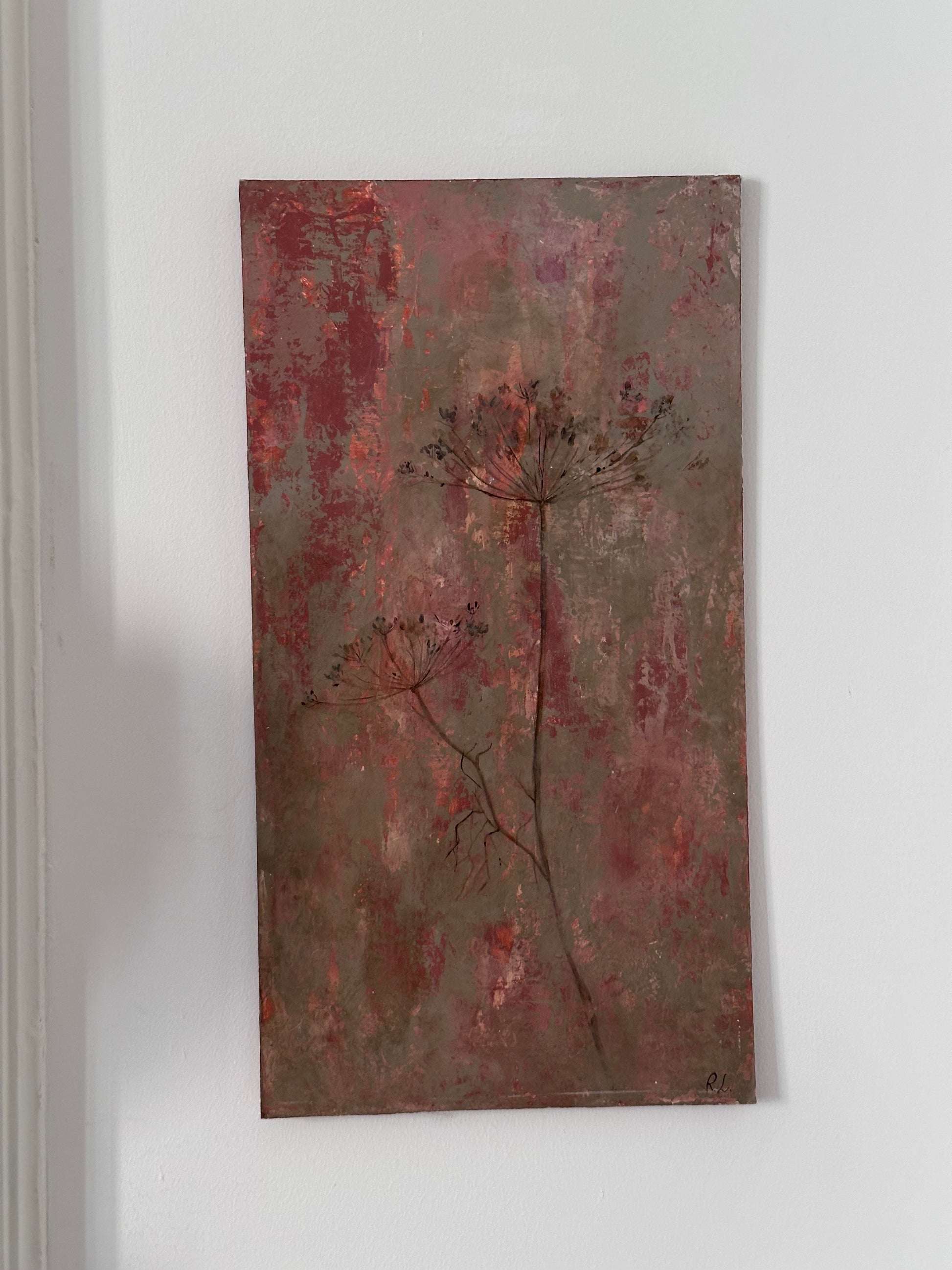 Inspired by the subtle beauty of nature and the delicate dried flowers at Vicolo Via Mameli, these exceptional acrylic and mixed media paintings are the work of Milan-based artist Rossela Lomuscio.