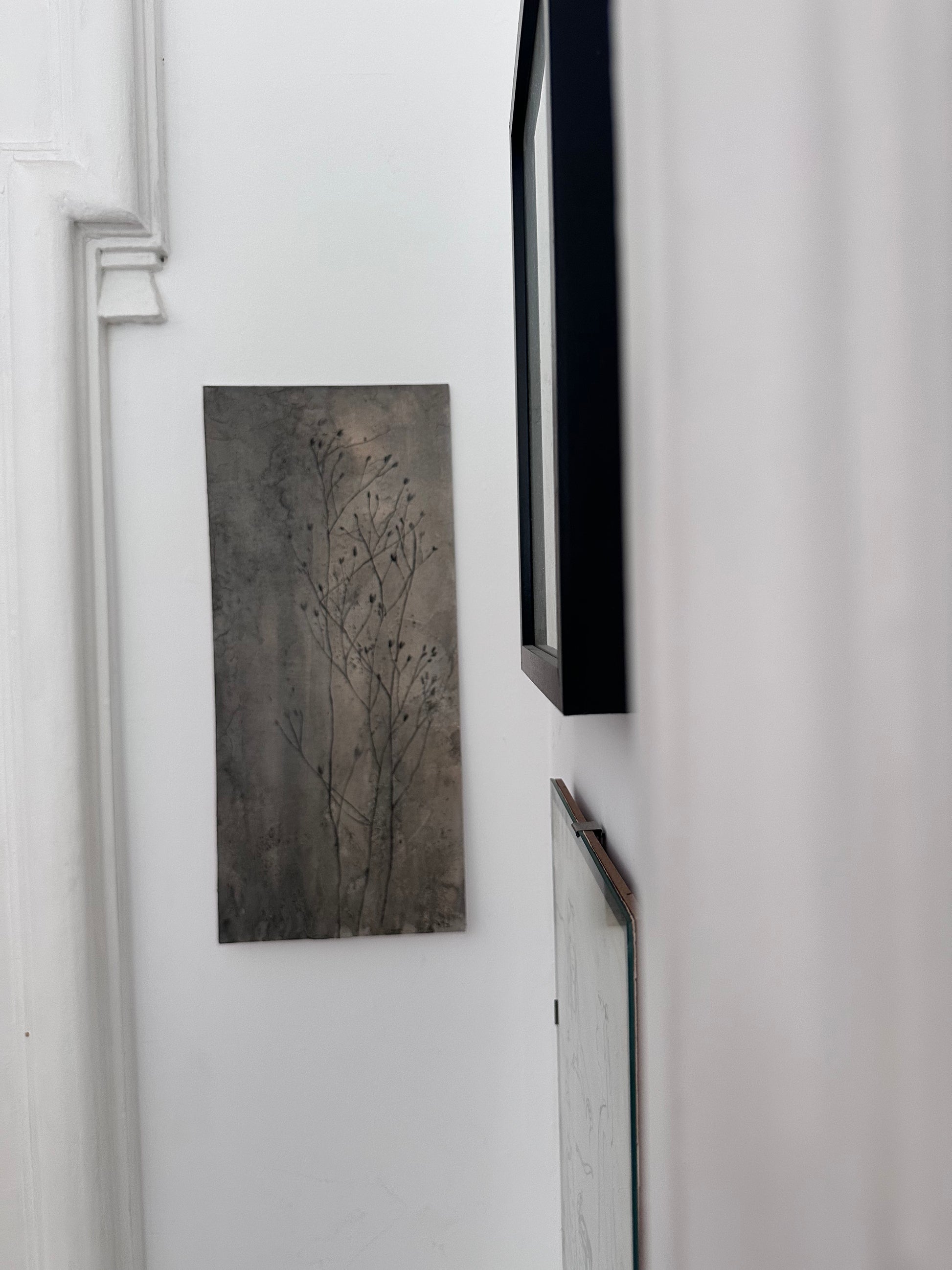 Inspired by the subtle beauty of nature and the delicate dried flowers at Vicolo Via Mameli, these exceptional acrylic and mixed media paintings are the work of Milan-based artist Rossela Lomuscio.