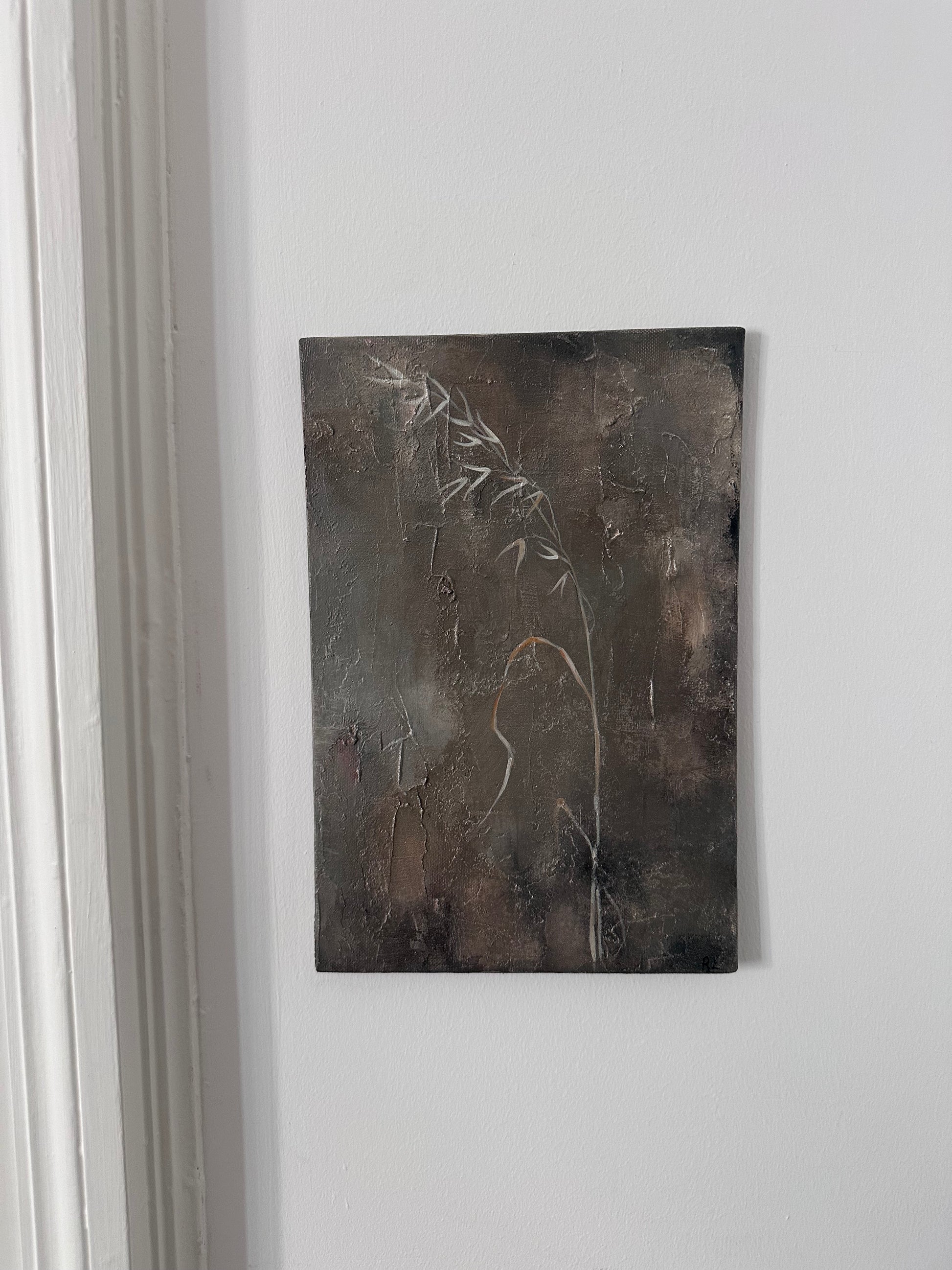 Inspired by the subtle beauty of nature and the delicate dried flowers at Vicolo Via Mameli, these exceptional acrylic and mixed media paintings are the work of Milan-based artist Rossela Lomuscio.