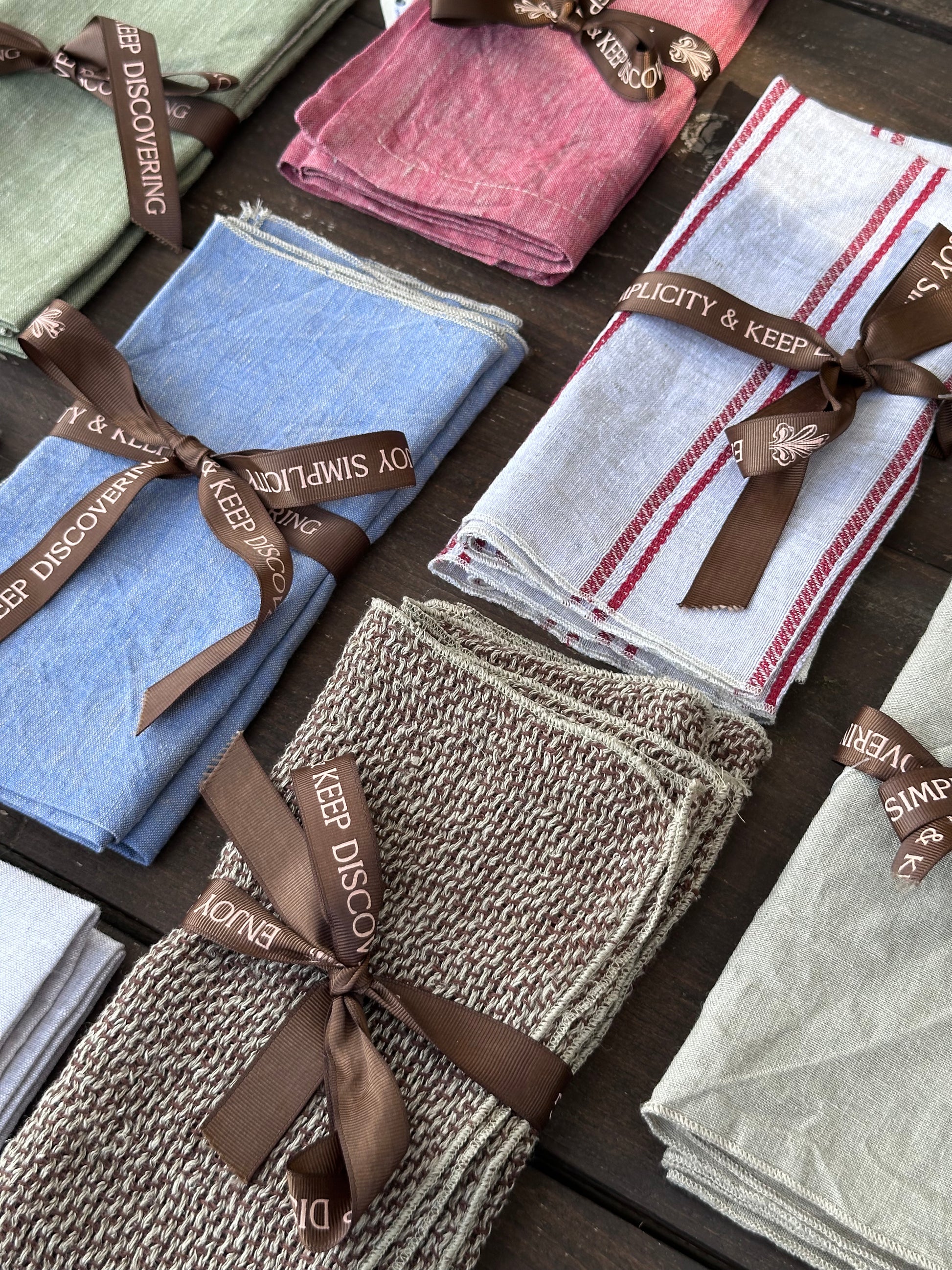 Inspired by the simplicity of nature, we created our own line of simple yet sophisticated linens. We use Italian linen grown and guaranteed by the Canapificio e Linificio Nazionale. The fiber is then processed in Italy with the best traditional looms to create these beautiful textures.