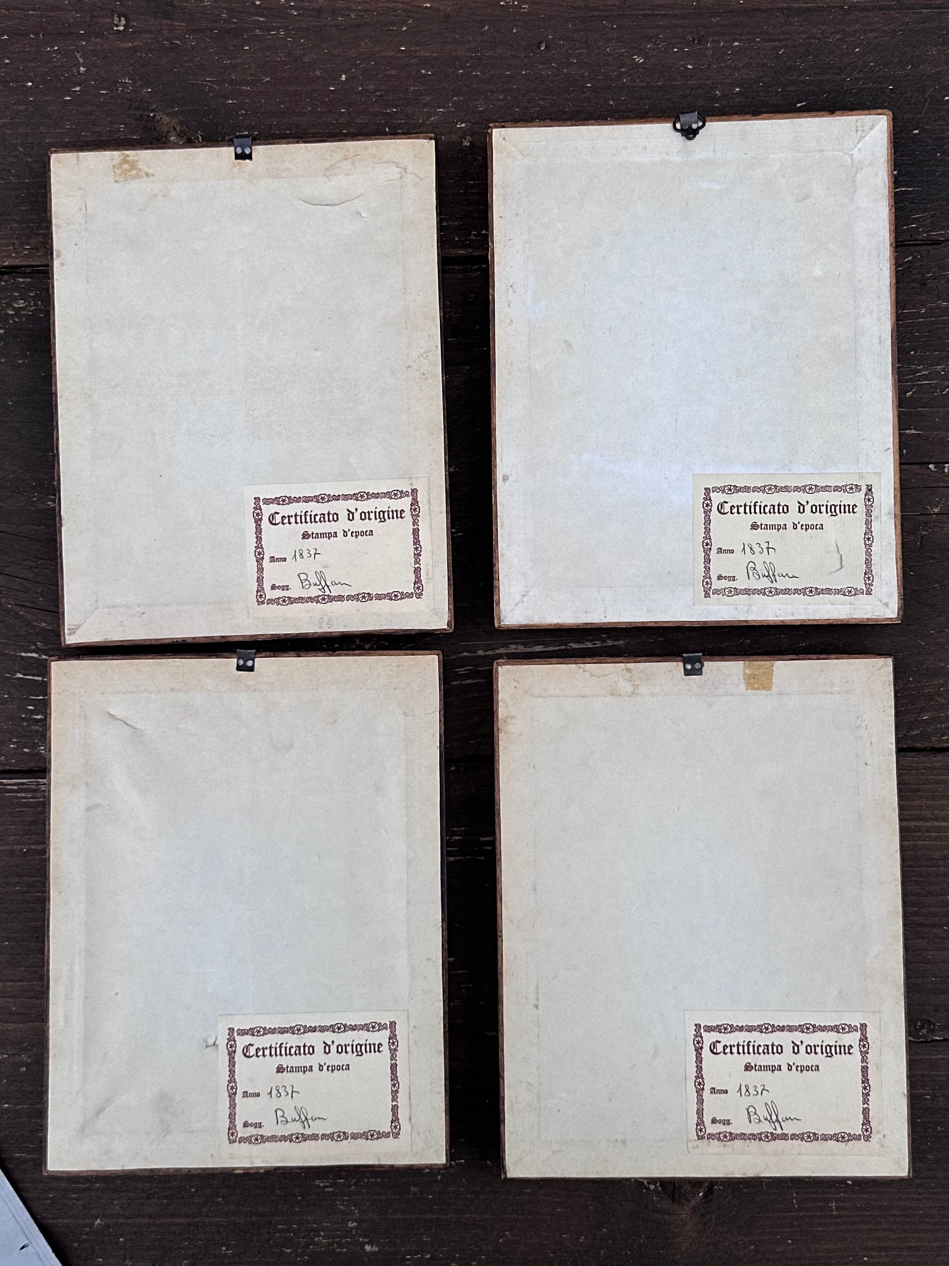 A charming collection of four animal illustrations, each elegantly framed and authenticated with an Italian signature and 1837 date mark. Perfect for adding a touch of vintage character to any room.