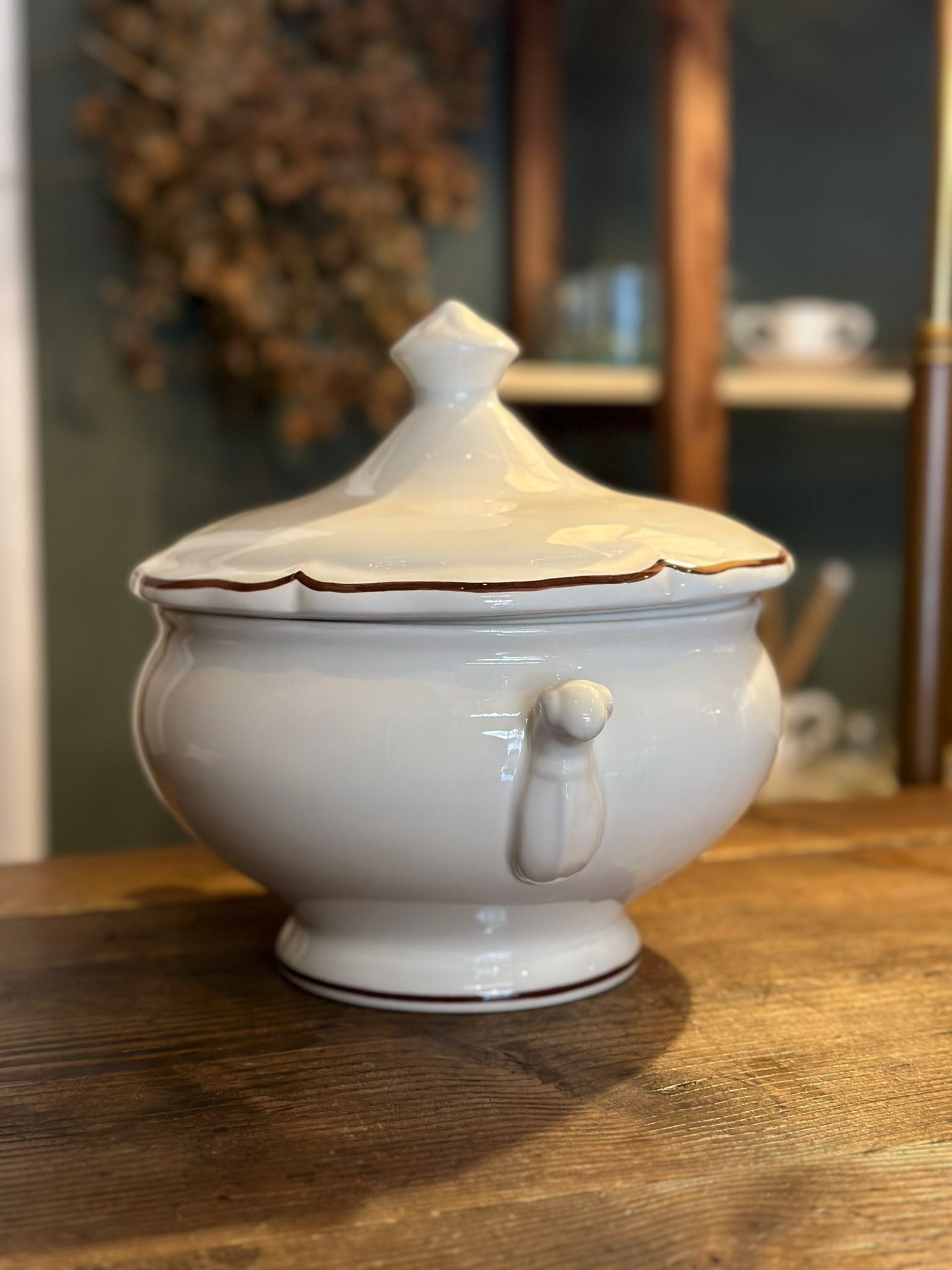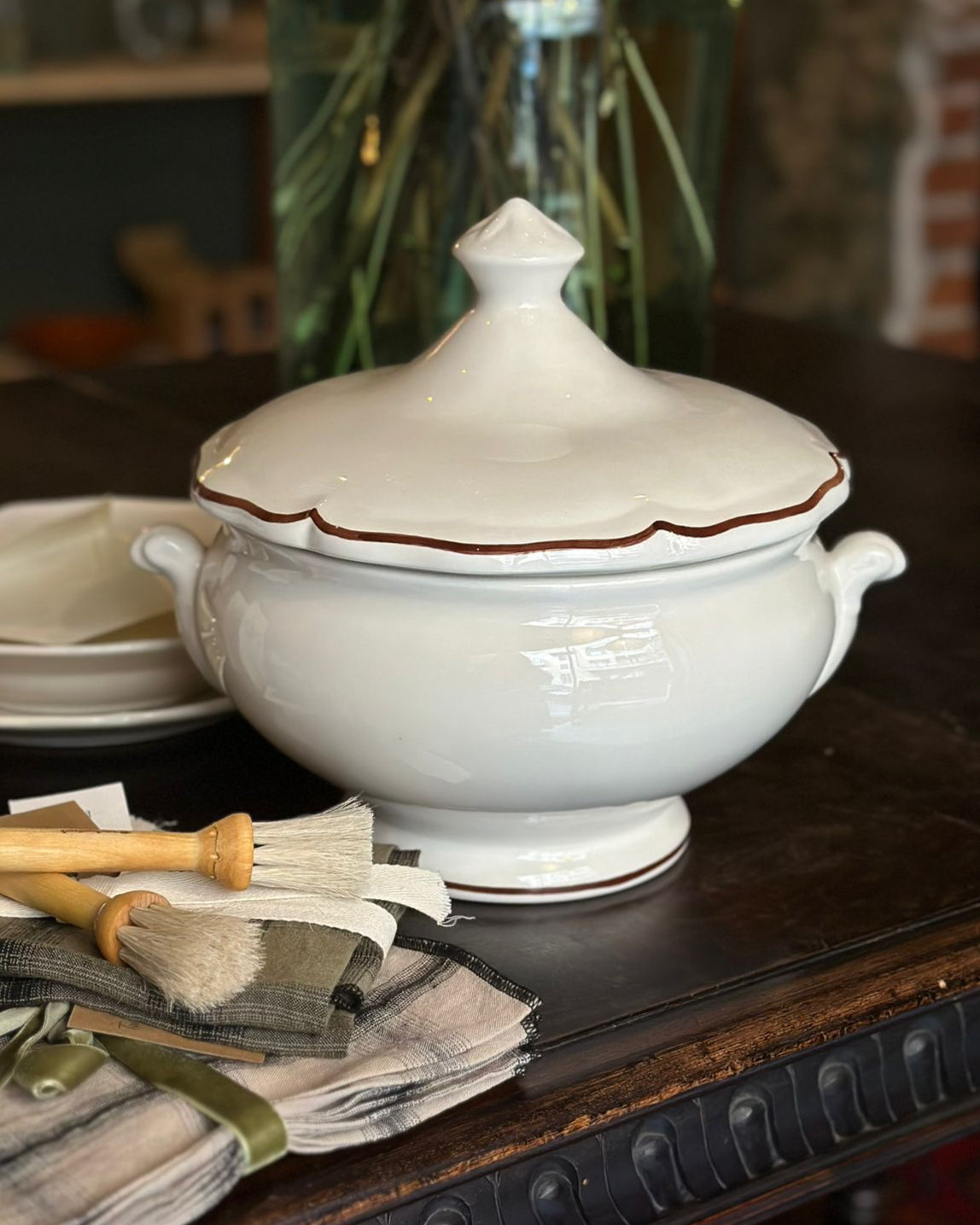 Inspired by the traditional Italian trattoria dish, we created our V.VM ceramic collection in white with a beautiful chocolate brown border, for an informal yet elegant table setting.