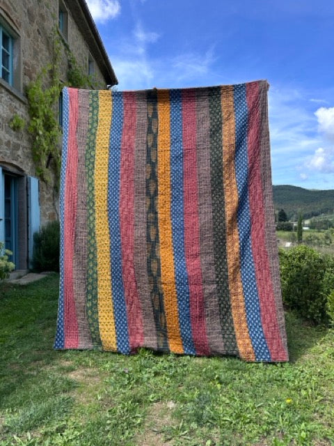Each of our V.VM quilts is thoughtfully designed, drawing inspiration from time-honored quilting traditions. Handmade in India from recycled fabric scraps, they bring together vibrant patterns and hand block-printed cotton in a way that feels both timeless and unique. No two are ever the same, each piece is a true original.