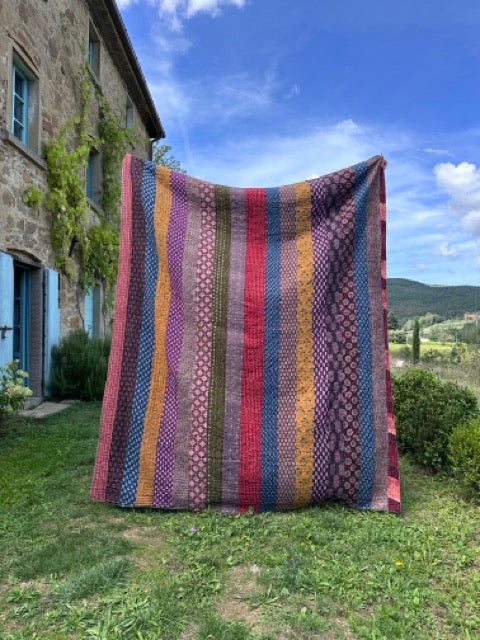 Each of our V.VM quilts is thoughtfully designed, drawing inspiration from time-honored quilting traditions. Handmade in India from recycled fabric scraps, they bring together vibrant patterns and hand block-printed cotton in a way that feels both timeless and unique. No two are ever the same, each piece is a true original.
